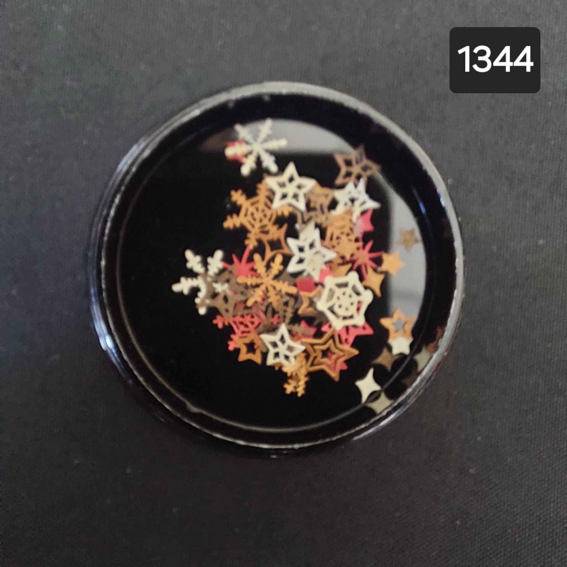 Golden snowflakes and stars nail art.